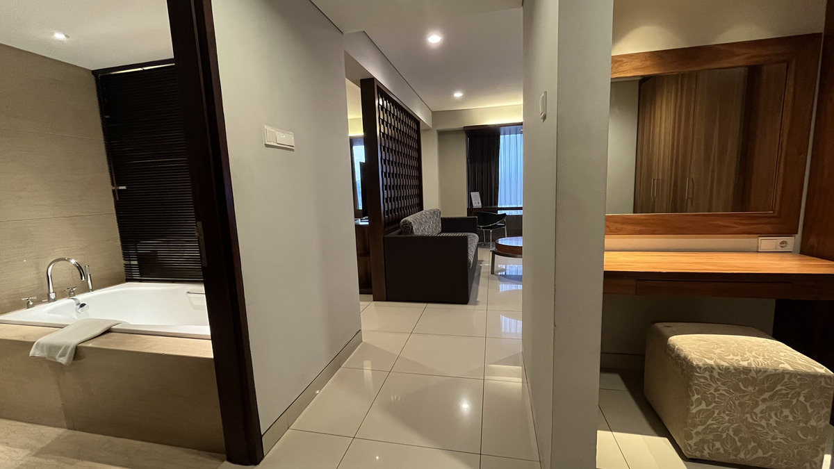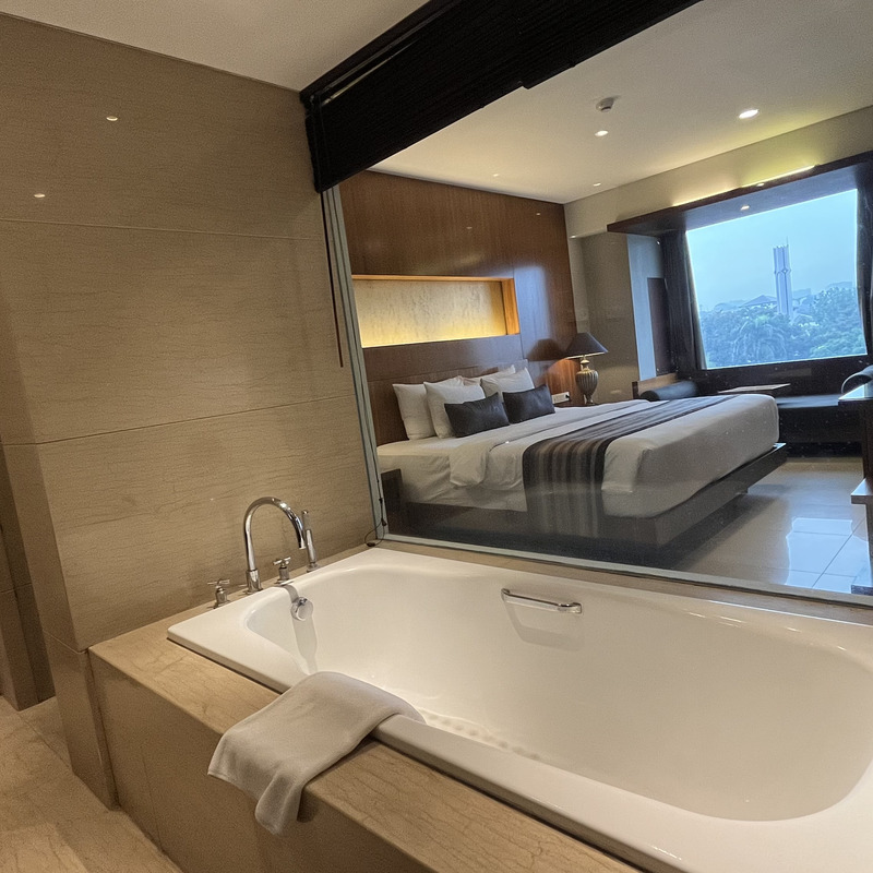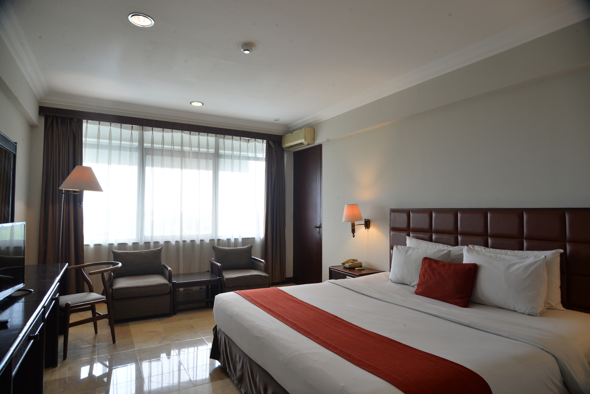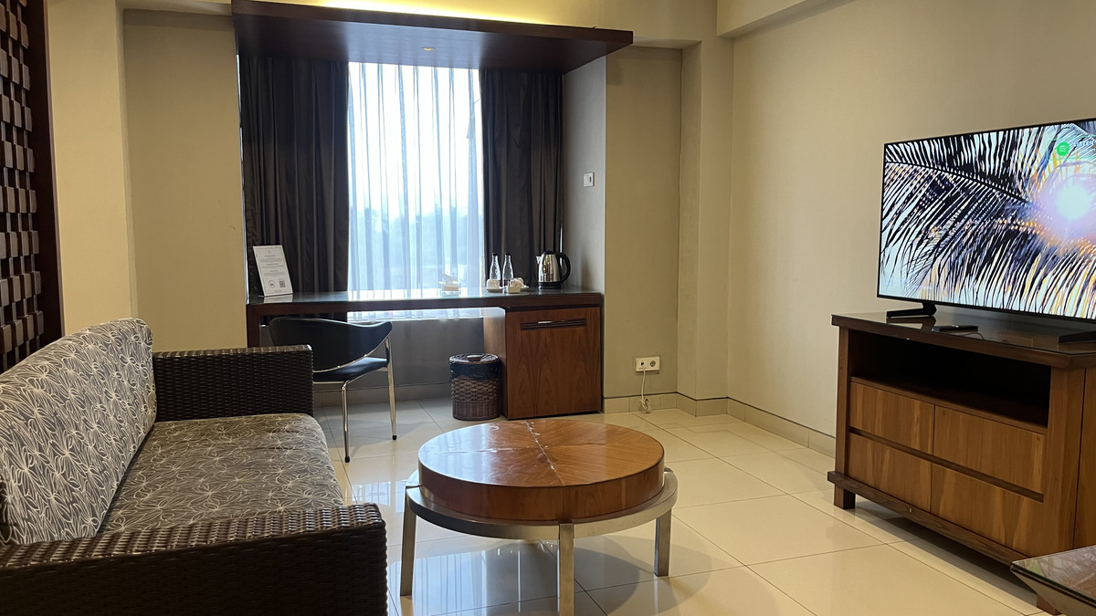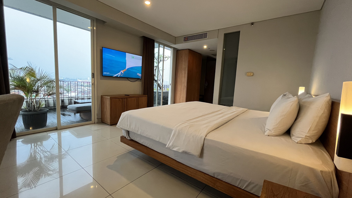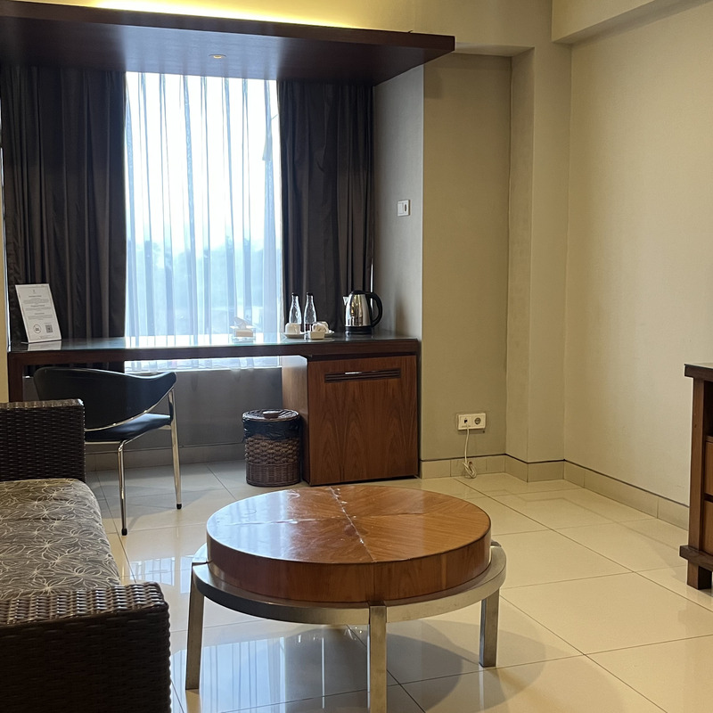 Experience our spacious Executive Suite complete with modern amenities, a king-sized bed, and a breathtaking city view for just $150 per night. Enjoy a relaxing stay at the heart of Bandung! Featuring a separate living area, work desk, and complimentary Wi-Fi, this suite is designed for both leisure and business travelers. Book now and elevate your stay!